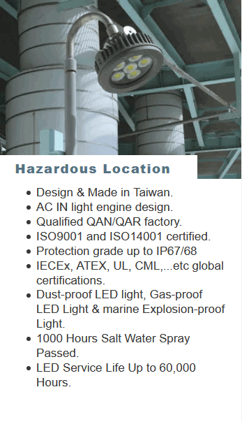 - The world’s first Explosion-proof LED Light for 100°C in addition high temperature environment.